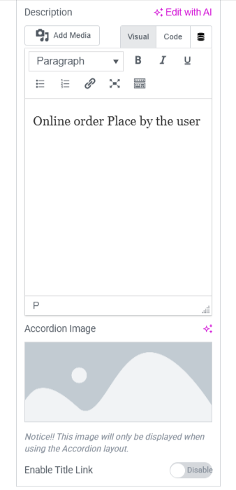 - Accordian Image: If you have selected accordian layout then upload accordian image