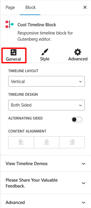 timeline block general settings