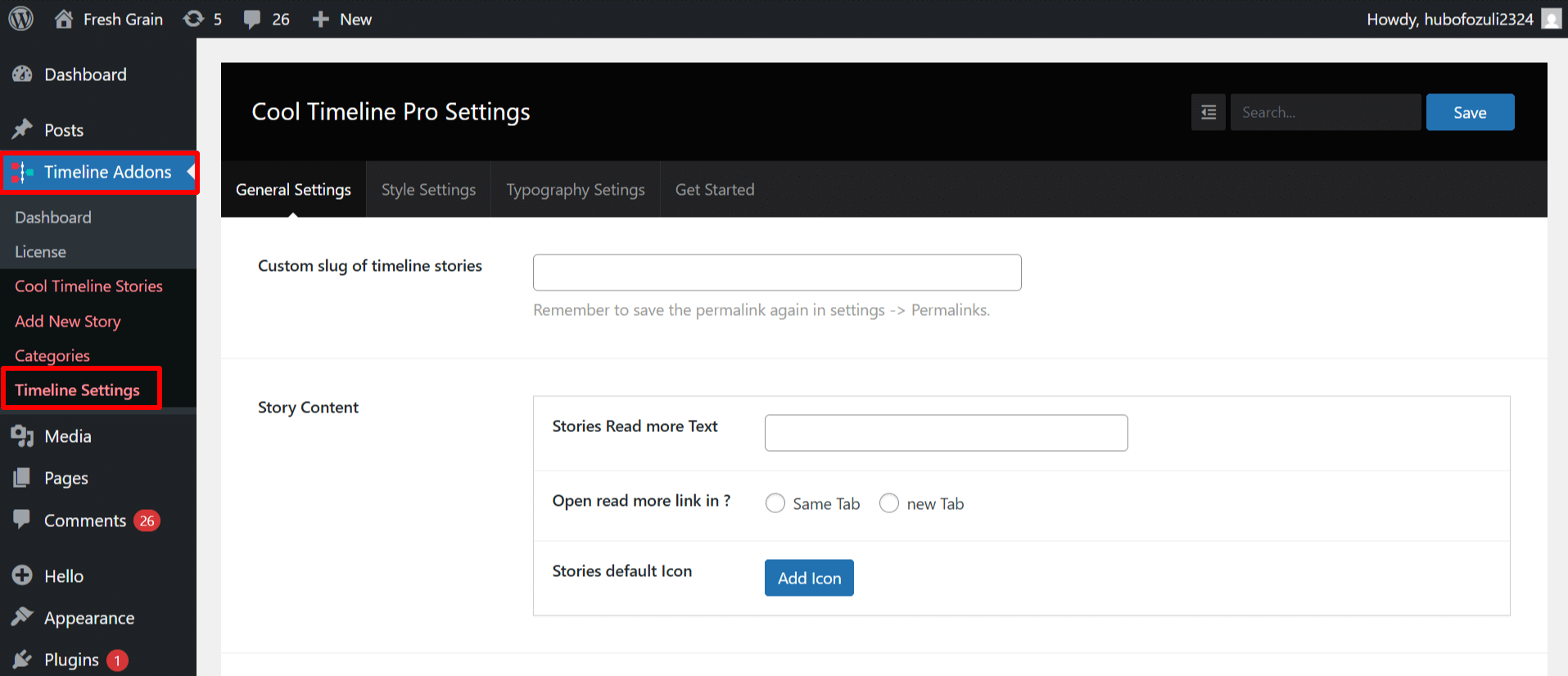 • From your WordPress dashboard, navigate to Timeline Addons > Timeline Settings.
