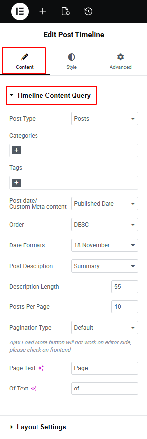 - Post Type: Choose which type of content you want to show in the timeline. By default, it is Posts, but you can also choose to display pages also.