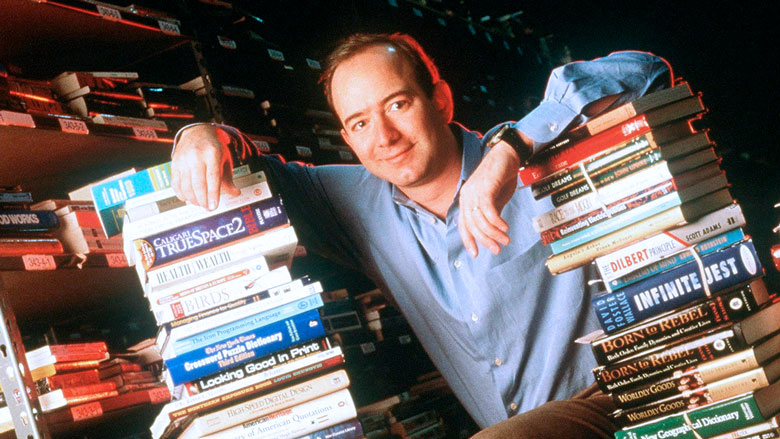 Jeff Bezos founded Amazon in his garage as an online bookstore. His goal was to use the internet to offer a huge selection of books to customers everywhere.